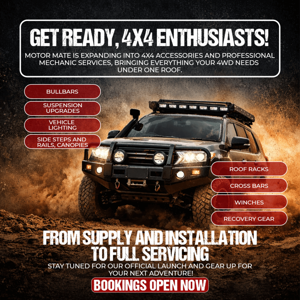 We’re a full-service auto centre offering tyres, tyre repair, wheel alignment, logbook & car servicing, brake and engine repairs plus 4×4 wheel & tyre packages. Bookings and same-day work are available at Motor Mate WA.